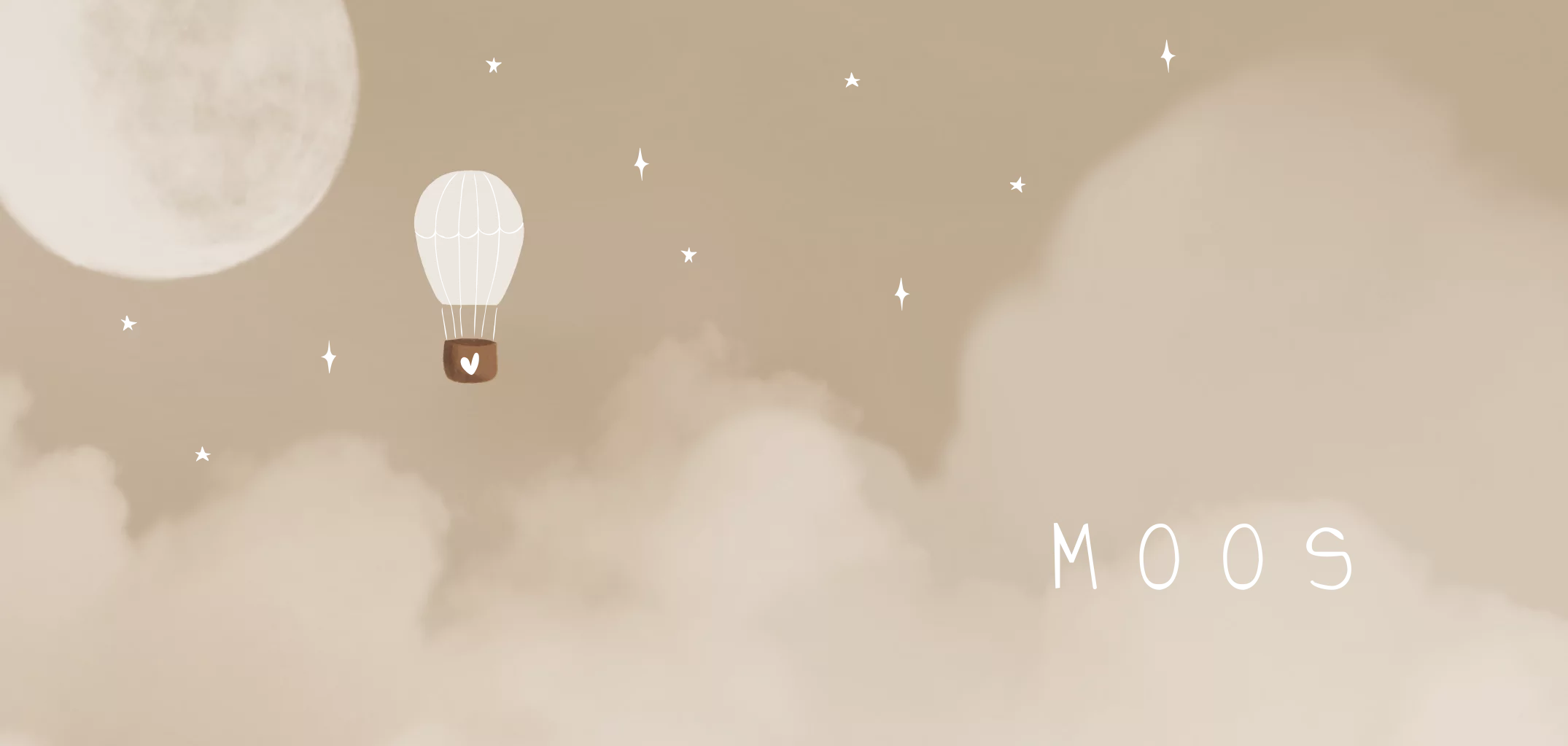 Prachtig liggend panorama geboortekaartje met een maan, wolken achtergrond, sterren en een luchtballon waarbij de lijnen van de luchtballon in goudfolie worden gedrukt. Liever een ander formaat of een andere folie/kleuren? Pas het gemakkelijk zelf aan in de handige online editor. Kom je er niet uit of heb je vragen - je kunt ons altijd inschakelen voor hulp!