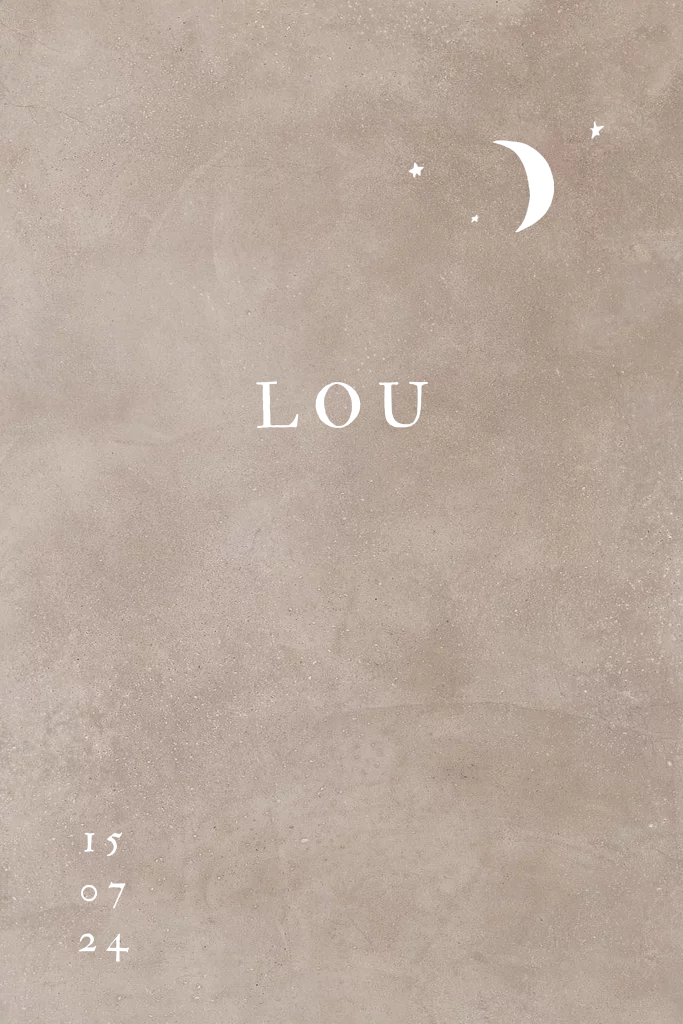 Stoer minimalistisch betonlook geboortekaartje in aardekleuren met goudfolie als details. Tip: bestel dit geboortekaartje op linnenpapier voor het extra gaaf effect!