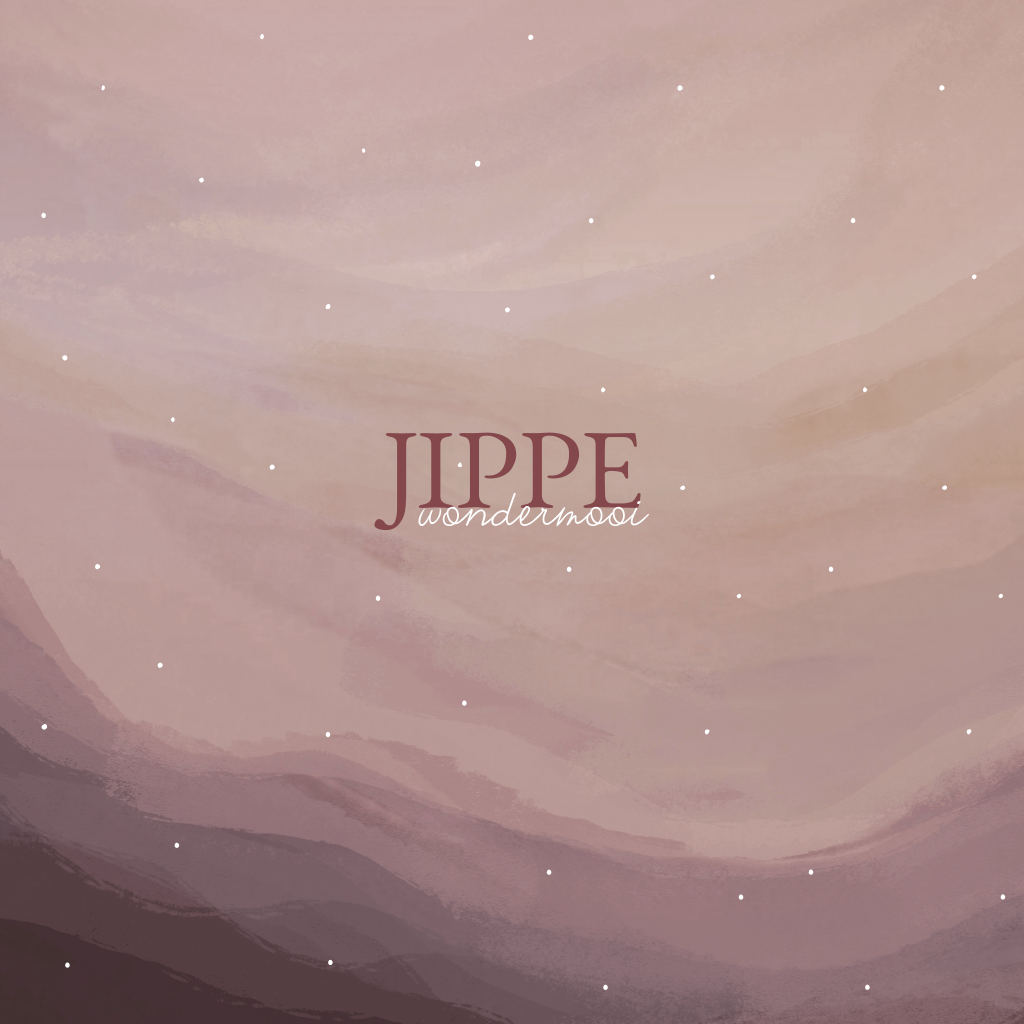 Winter warm geboortekaartje met bergenachtergrond en sneeuw (stipjes in goudfolie). Personaliseer het kaartje zelf naar smaak met de handige editor en pas bijvoorbeeld de kleuren en/of folie aan.