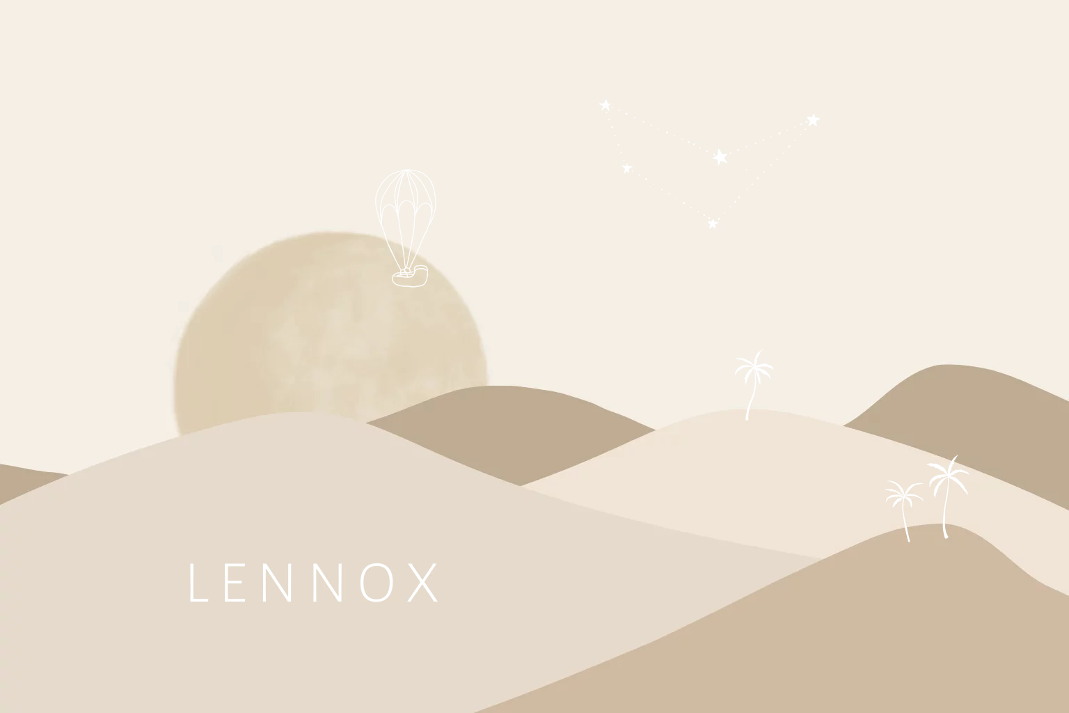 Geboortekaartje met bergen, maan, sterrenbeeld en luchtballon
