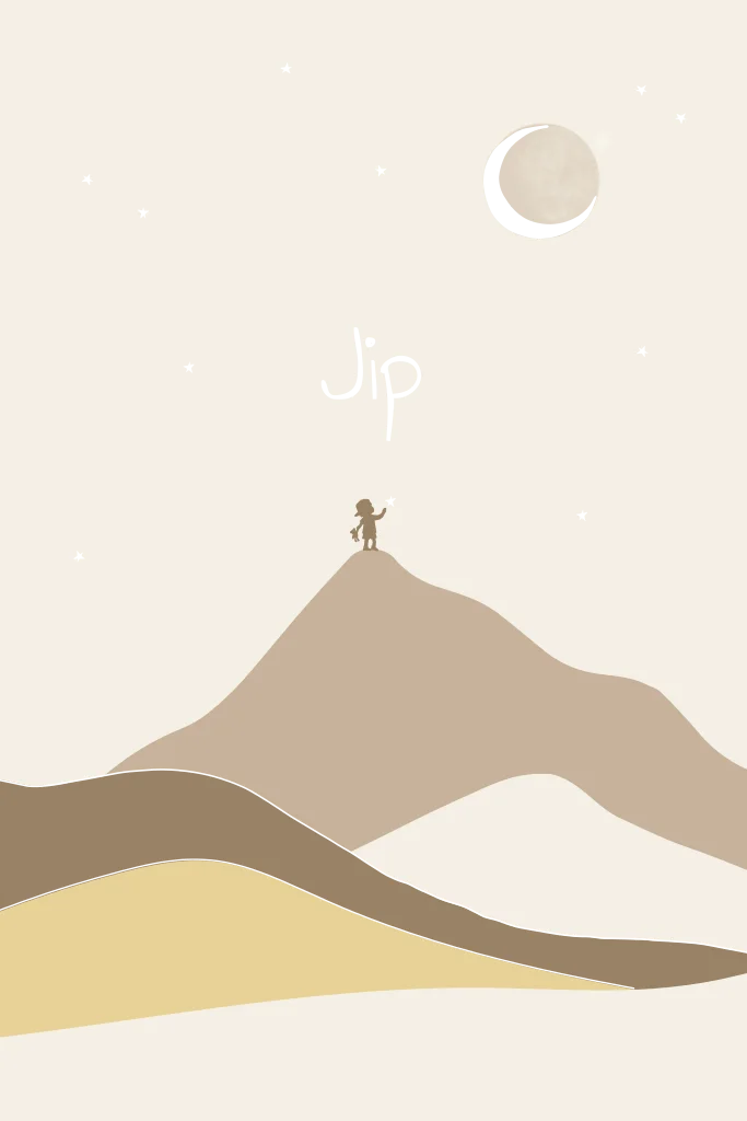 Stoer geboortekaartje met berglandschap en een maan & sterren in goudfolie details. Pas de silhouet op het kaartje gemakkelijk aan en kies uit veel verschillende silhouetjes in de afbeeldingen! Heb je hulp nodig met opmaak van het kaartje? Wij helpen je graag!