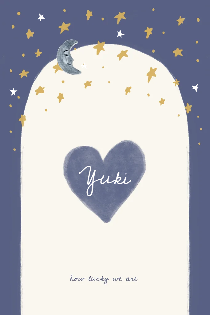 Gaaf geboortekaartje in een bohemian electic stijl met een mooie blauwe sterrenhemel in boog met een hart. Pas gemakkelijk de kleuren aan. Wil je deze kaart liever in een andere vorm of dubbele kaart - stuur ons een berichtje en wij zetten het gratis voor je om.