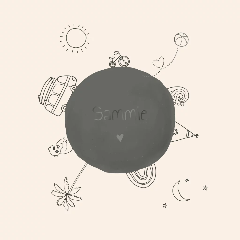 Een geboortekaartje om helemaal te personaliseren qua items rondom de wereldbol.