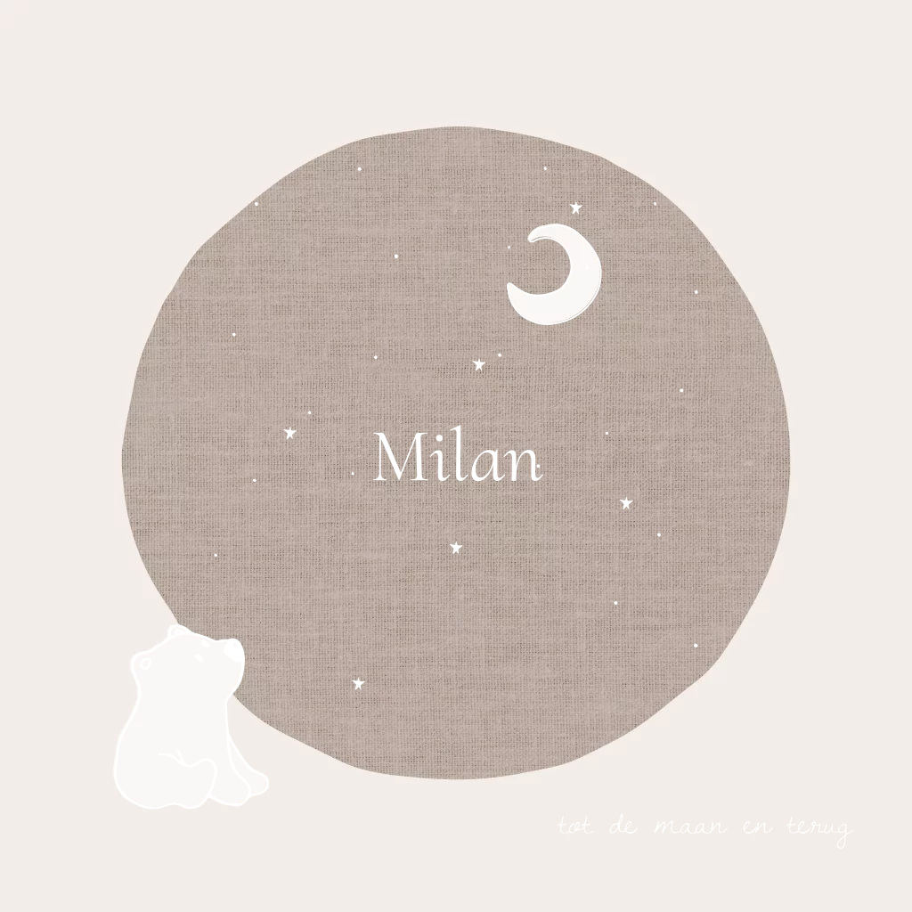Vierkant geboortekaartje met ronde sterrenhemel met maan en beertje