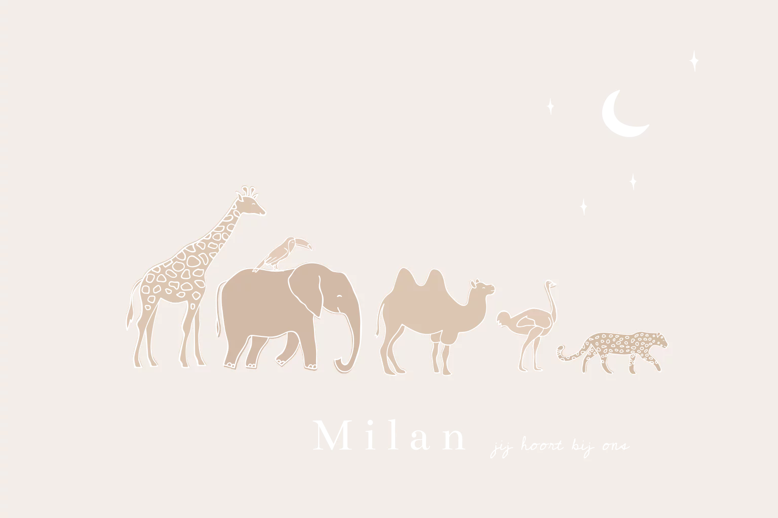 Geboortekaartje jongen afrika dieren lopend nacht in goudfolie