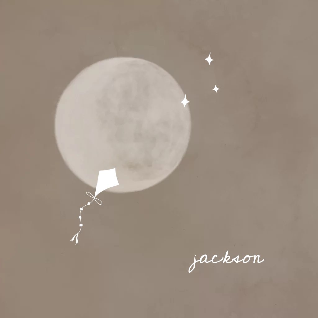 Geboortekaartje jongen volle rode maan met vlieger in goudfolie