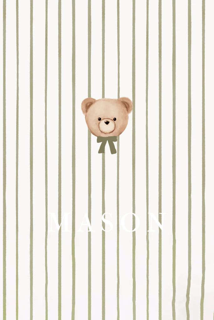 Lief en trendy streepjes geboortekaartje met handgetekende knuffelbeertje. Heb je hulp nodig wil je de kaart in een ander formaat/ dubbele kaart of heb je vragen, stuur ons een berichtje - wij helpen je graag!