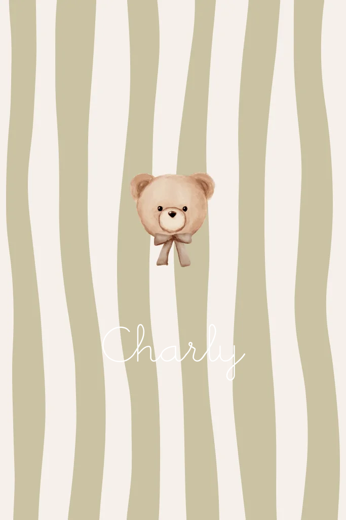 Geboortekaartje strepen golvend modern handgetekend teddybeertje