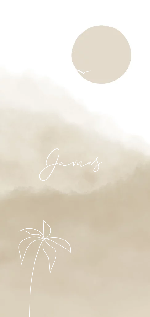Langwerpig geboortekaartje met aqaurel achtergrond met maan palmboom