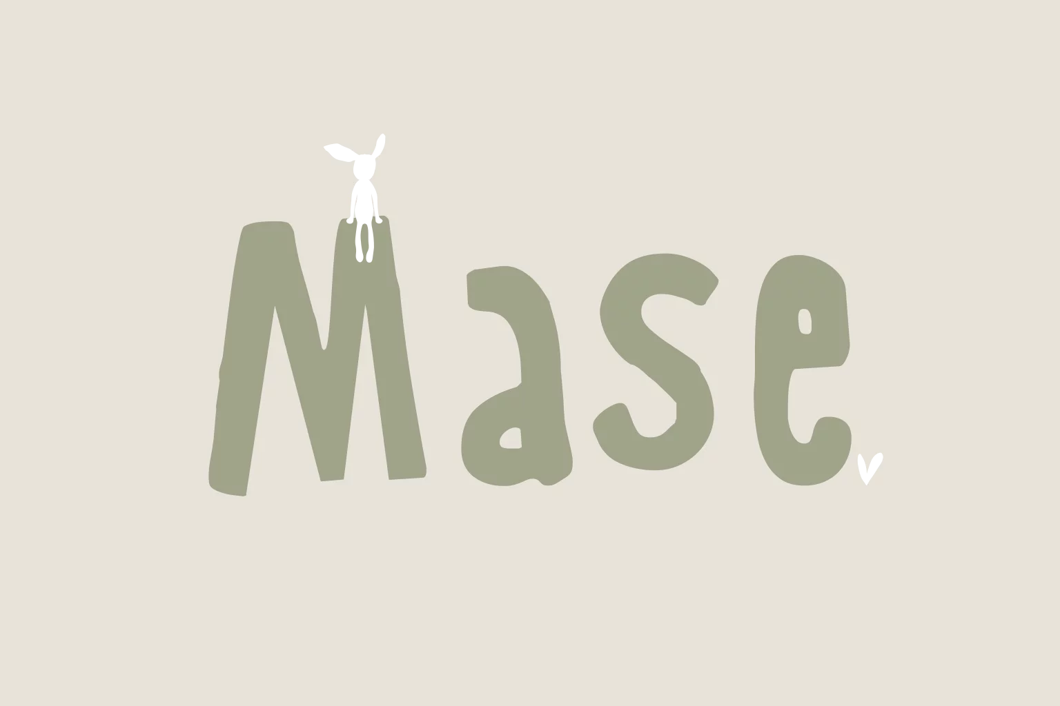 Een minimalistisch geboortekaartje met een knuffelkonijn zittend op de naam. Het hartje en knuffelkonijn worden gedrukt in zilverfolie. Liever andere kleuren of een andere kleur folie? Pas het gemakkelijk aan in de editor.