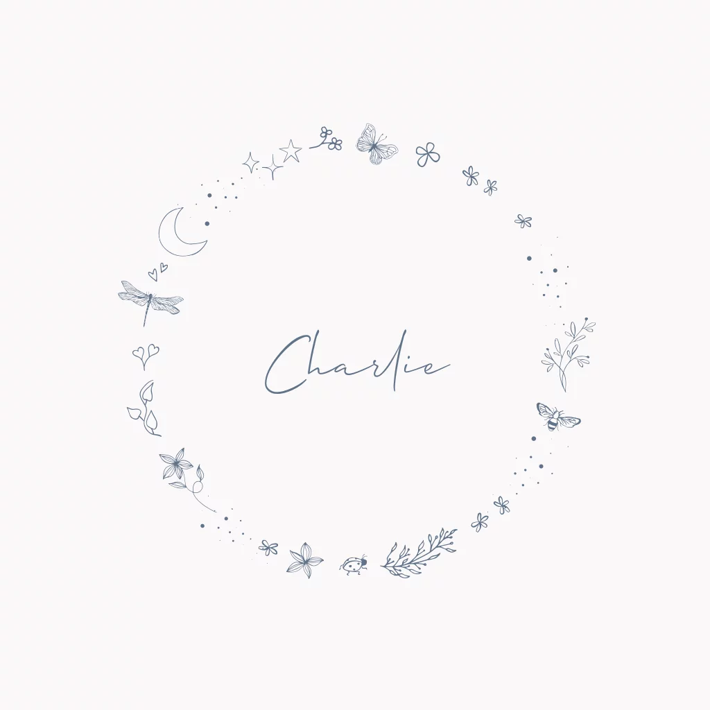 Persoonlijk geboortekaartje met handgetekende tekeningen in rond