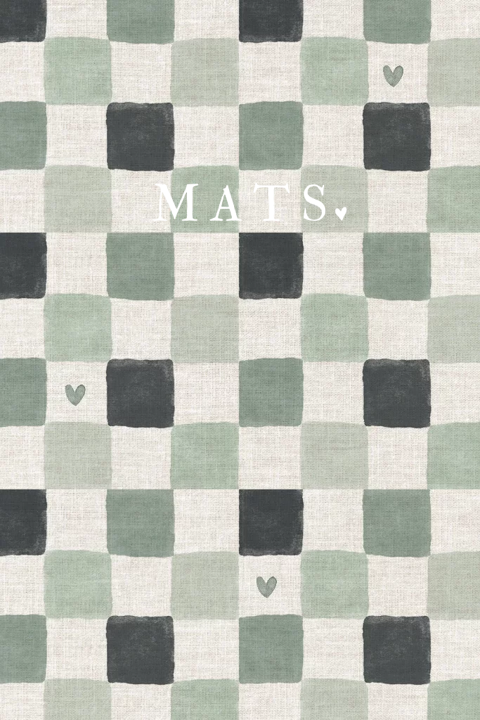Trendy geboortekaartje met vierkant patroon in kleur met linnenlook en koperfolie. Tip: bestel dit kaartje op linnen papier om de look helemaal af te maken en het linnen tot leven te laten komen!