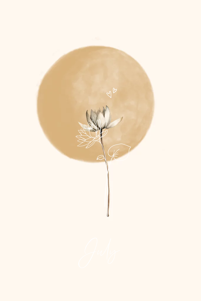 Geboortebloem juli lelie geboortekaartje volle maan en goudfolie