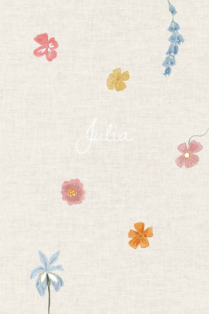 Fleurig bloemen geboortekaartje met handgetekende bloemen en een linnenlook achtergrond, het kaartje heeft veel goudfoliedetails voor het echte wouw-effect. Liever een dubbele kaart of een andere vorm kaart of heb je hulp nodig met opmaken? Stuur een berichtje, wij helpen je graag verder!