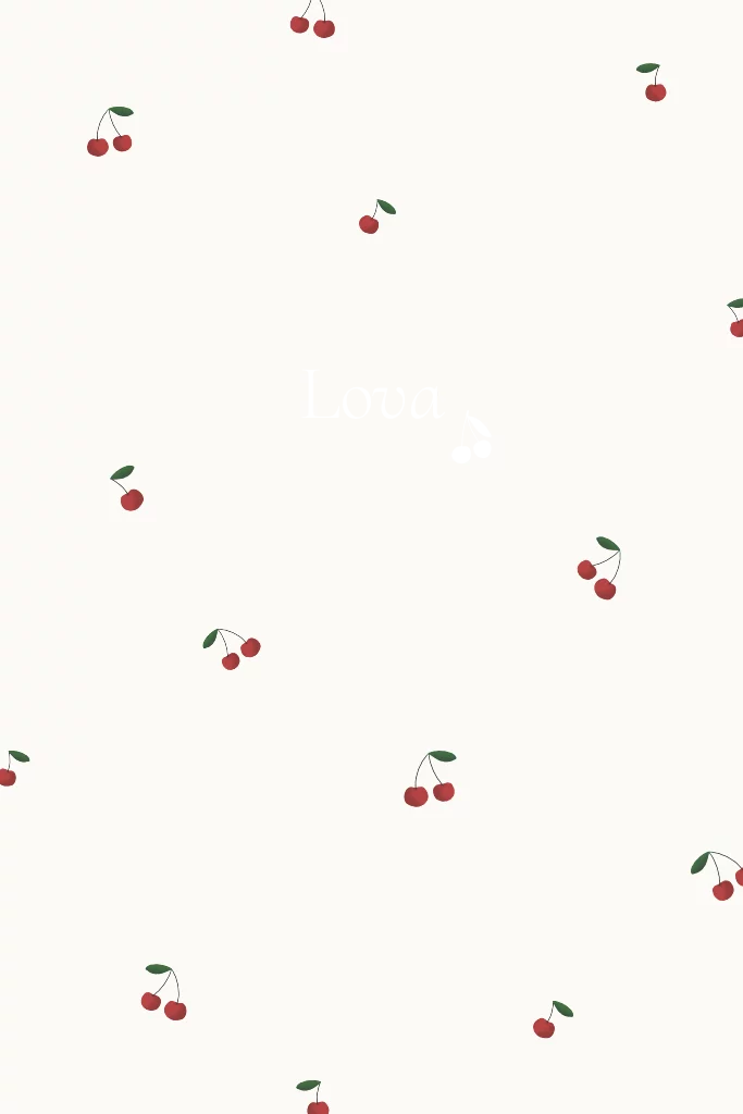 Lief geboortekaartje met kleine aquarel kersen. De babynaam en 1 kersje worden gedrukt in rosegoudfolie.