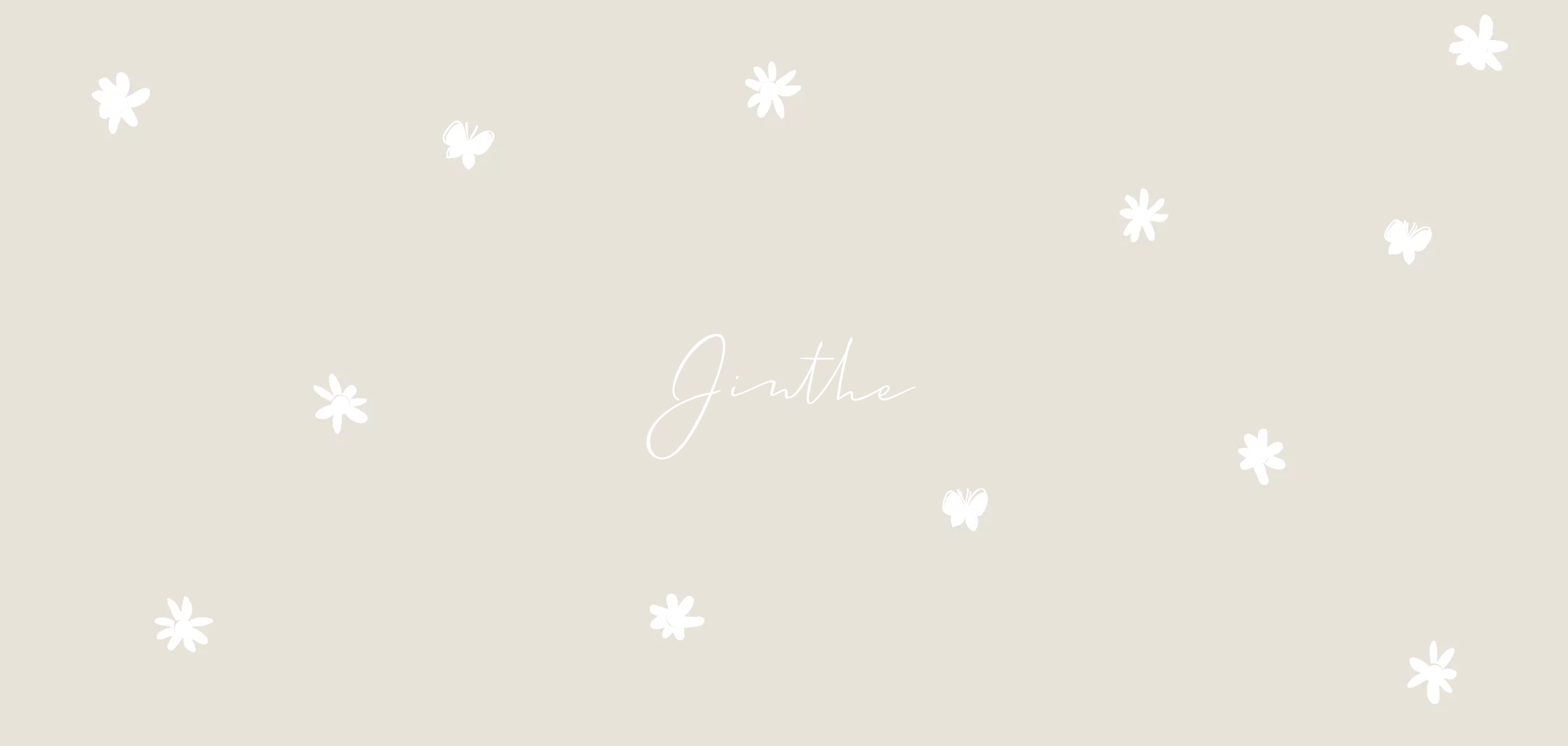 Een lief liggend geboortekaartje in neutrale kleuren. De knopjes van de bloemen, de lijnen van de vlinders en de babynaam worden gedrukt in koperfolie.