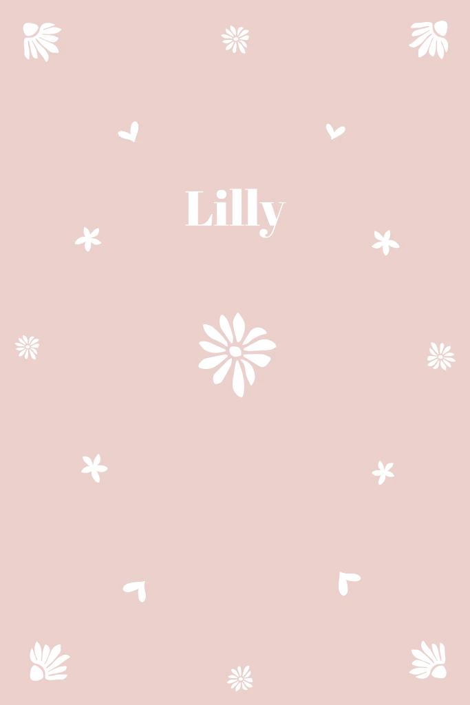 Een lief geboortekaartje met bloemen en hartjes in koperfolie.