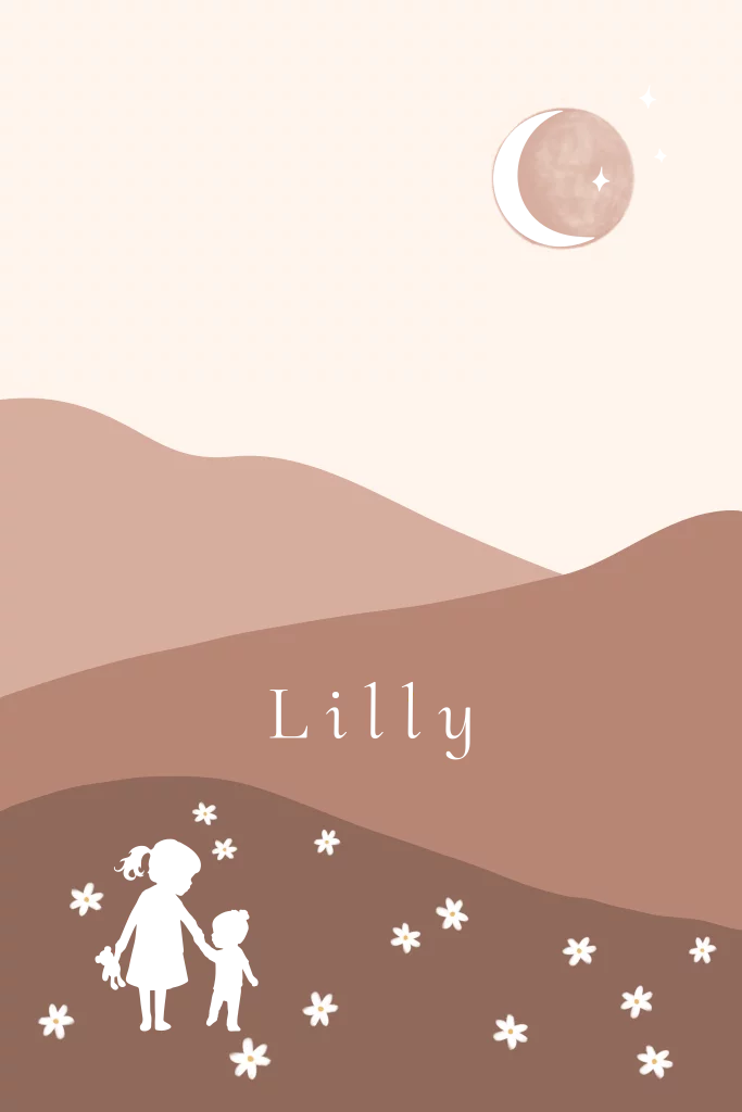 Mooi geboortekaartje met zandkleuren berglandschap met een silhouette van een grote zus met zusje. Pas zelf gemakkelijk de kleuren van de bergen/achtergrond aan. Ander gezinssamenstelling? Kies uit de editor andere silhouette of lijntekeningen!