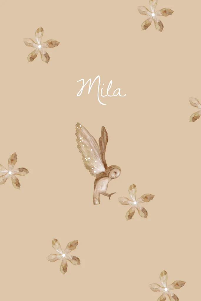 Een lief herfst geboortekaartje met mooie aqaurel beige bloemetjes en een vliegende uil, afgewerkt met goudfolie knopjes en goudfoliestipjes op de vleugels van de uil - hierdoor komt het kaartje tot leven. Wil je deze kaart in een ander formaat of dubbele kaart? Stuur ons een berichtje en wij passen dit gratis om voor je in je account!