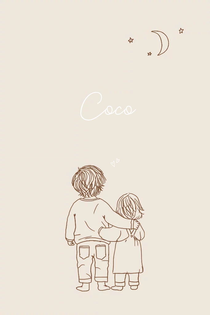Lief geboortekaartje met een lijntekening van een grote broer met zijn arm om zijn kleine zusje heen, kijkend naar de maan. Je kunt gemakkelijk de kleuren wijzigen en tekeningen vervangen door jouw gezinssamenstelling. Staat deze niet in de editor? Je kunt ons altijd contacten met jouw wensen! Wij helpen je graag!