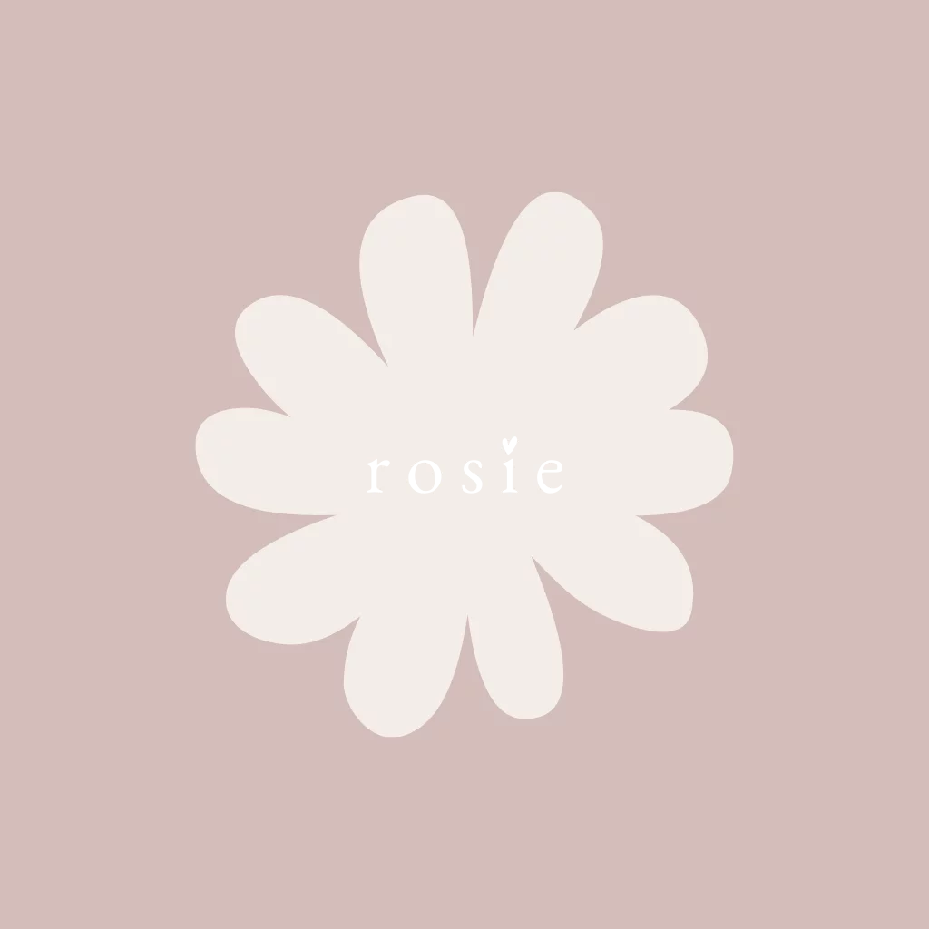 Lief geboortekaartje met madelief en rosegoudfolie in oudroze.