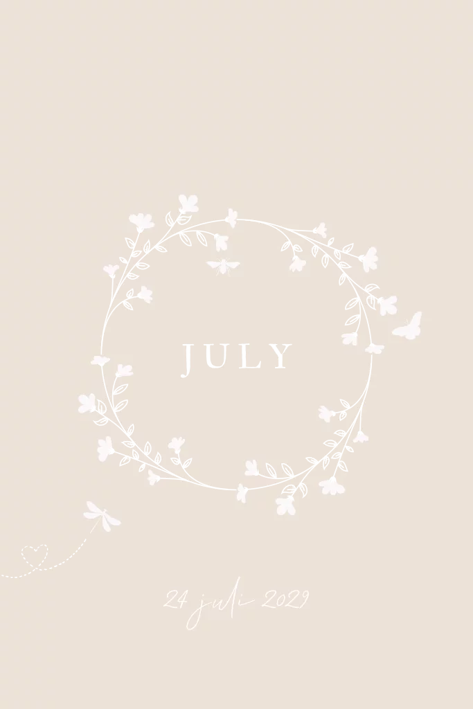 Lief geboortekaartje meisje met hippe bloemenkrans witte bloemetjes