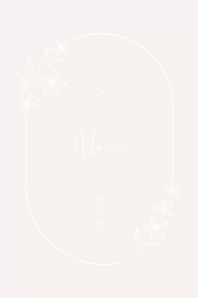 Lief geboortekaartje in ovaal met handgetekende bloemen in goudfolie. Pas kleuren, folie en gegevens gemakkelijk aan in de handige editor. Voor hulp, stuur gewoon een berichtje - wij helpen je graag!