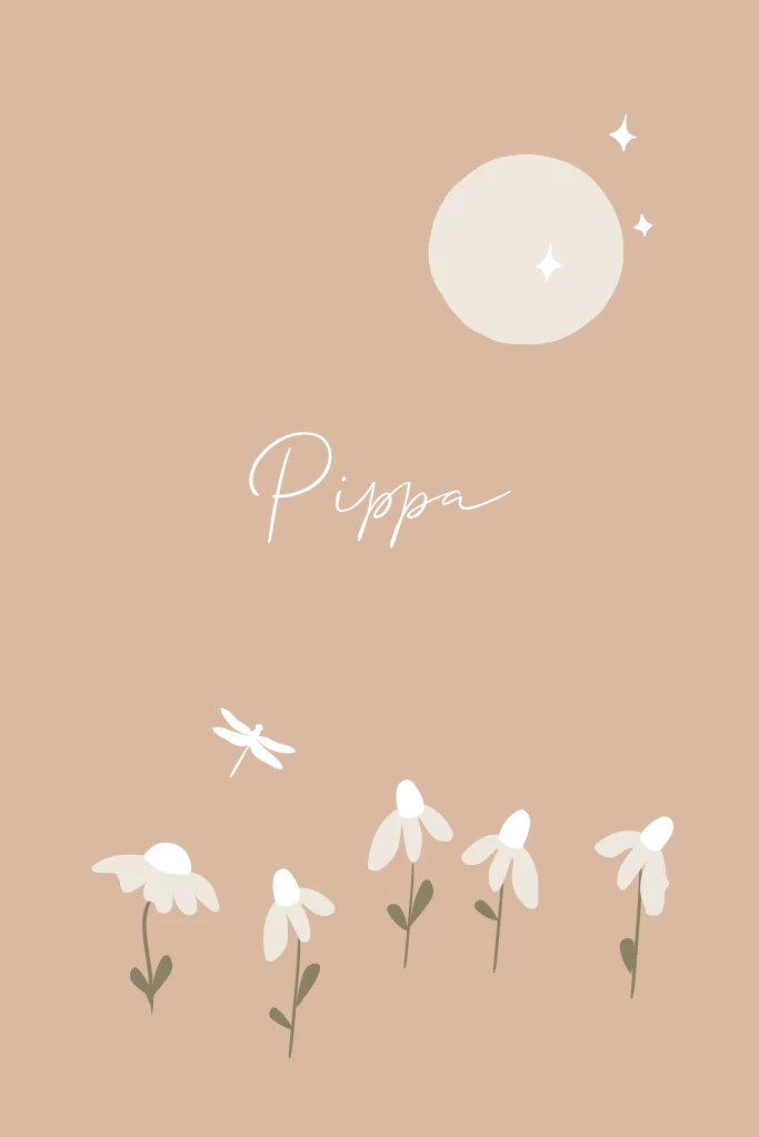 Lief madelief geboortekaartje in beige met goudfolie knopjes en libelle.