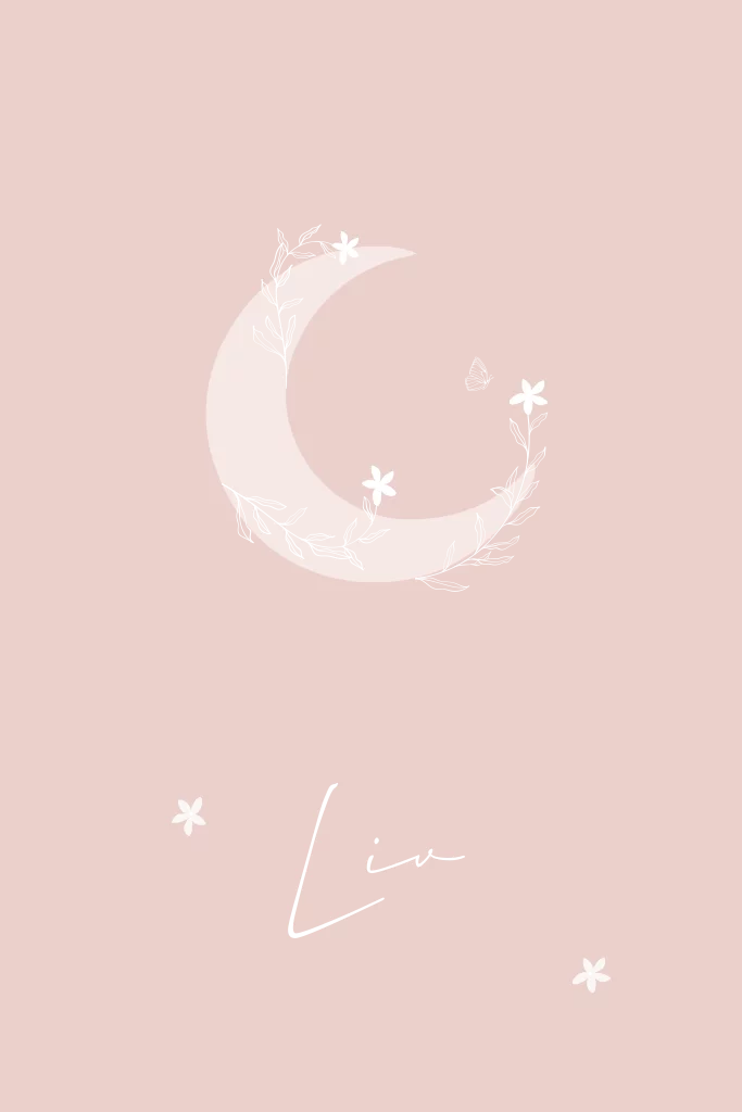 Lief roze geboortekaartje met maan met madelief bloemen rondom de maan. De vlinder, takjes, babynaam en knopjes van de bloemen worden gedrukt in rosegoudfolie. Liever een andere kleur achtergrond of bijvoorbeeld andere folie? Pas het gemakkelijk aan in de handige editor.