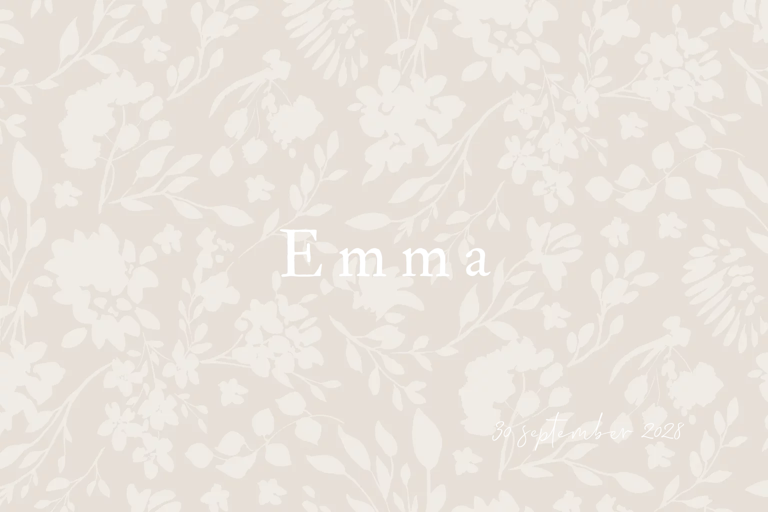 Lief geboortekaartje voor een meisje met een mooi zandkleurige bloemenpatroon - zie je in elke kleur kunt wijzigen naar jouw smaak. Denk bijvoorbeeld aan de kleuren van de babykamer. Hulp nodig? Wij helpen je graag!