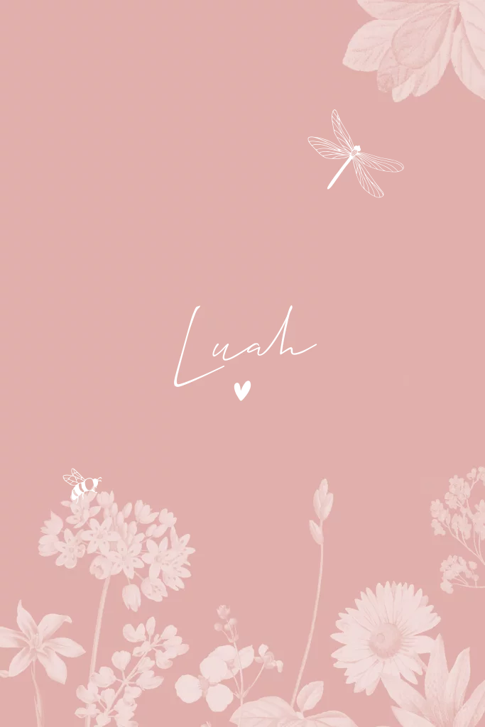 Geboortekaartje met dromerige wilde bloemen achtergrond, bijtjes en maan in rosgoudfolie. Dit is een roze variant van het wilde bloemen geboortekaartje. Hulp nodig met opmaken (of een andere kleur achtergrond)? Wij helpen je graag!