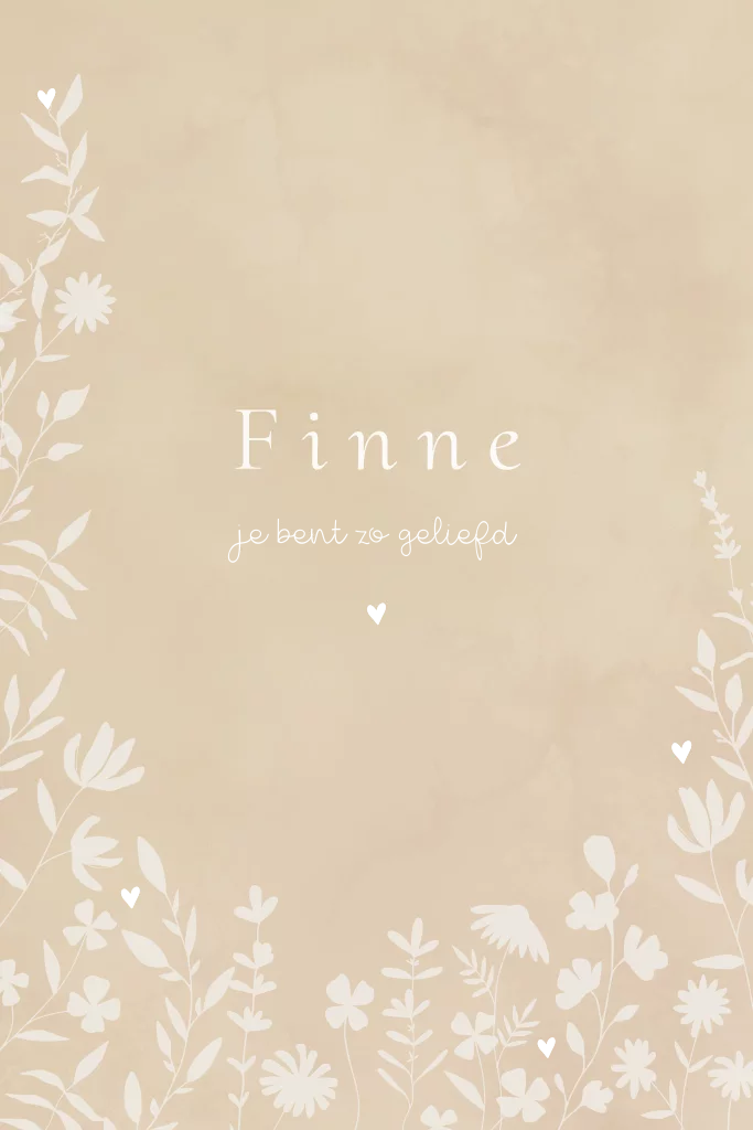 Mooi geboortekaartje met bloemen en hartjes. De hartjes en tekstje onder de naam worden gedrukt in regenboogfolie.
