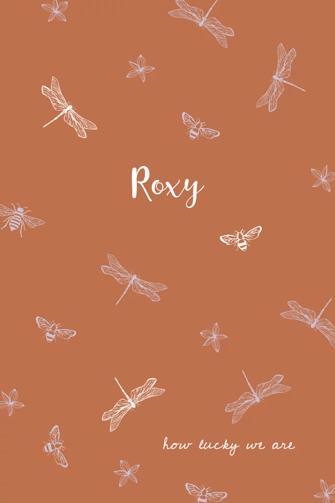 Roestkleurig geboortekaartje met lila libelle bijtjes en bloemetjes