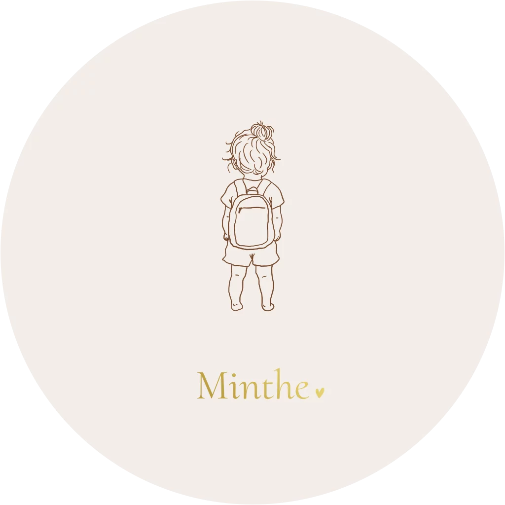 Rond geboortekaartje met lijntekening meisje met linnenlook