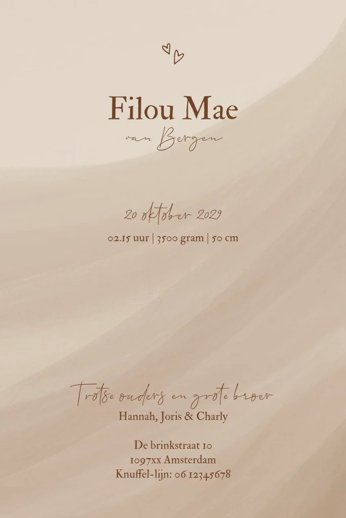 Geboortekaartje tweeling silhouet zandkleur maan hartjes goudfolie