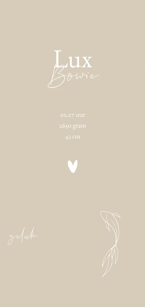 Langwerpig dubbel geboortekaartje tweeling vissen yingyang goudfolie