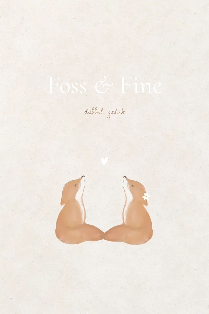 Lief tweeling geboortekaartje voor 2 herfstkindjes met 2 handgetekende aquarel babyvosjes met de namen en een hartje in folie. Het bloemetje van het rehtervosje kun je gemakkelijk weglaten voor 2 jongenstweeling of 1 erbij plakken voor 2 meisjes. Heb je hulp nodig of heb je vragen? Wij helpen je altijd graag!