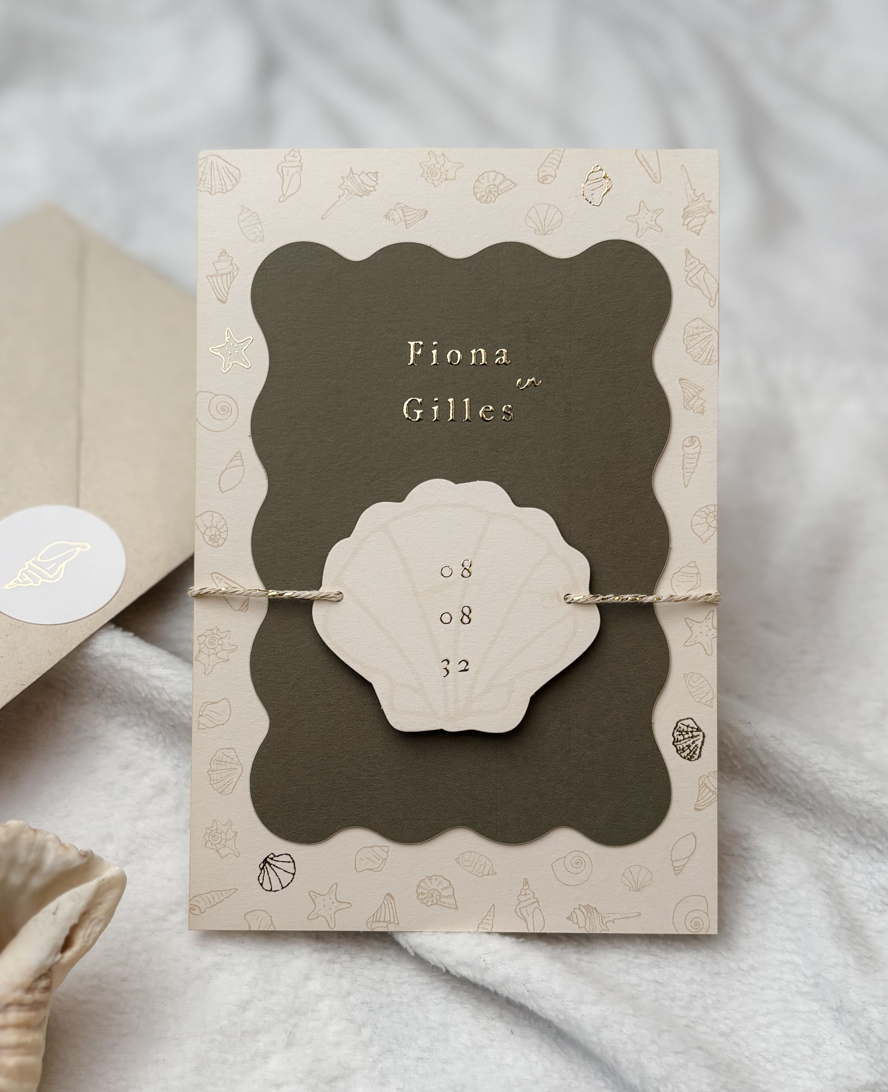 Prachtige bijzondere trouwkaart met een beachvibe voor een strandbruiloft. Pas de kleuren, gegevens en teksten allemaal zelf aan - maar kom je er niet uit of heb je vragen, je kunt altijd contact met ons opnemen voor hulp! Wij helpen je graag verder.