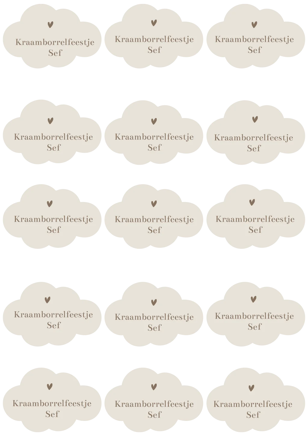 Labels wolkvormpjes A4 kraamborrelkaartje