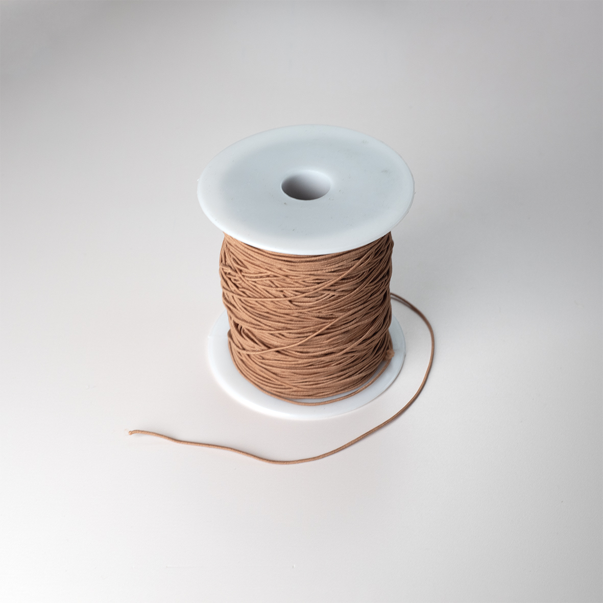 Roestbruin elastisch koord (10 meter) van 1 mm dik. Geschikt om ca. 25 kaarten mee te versieren.