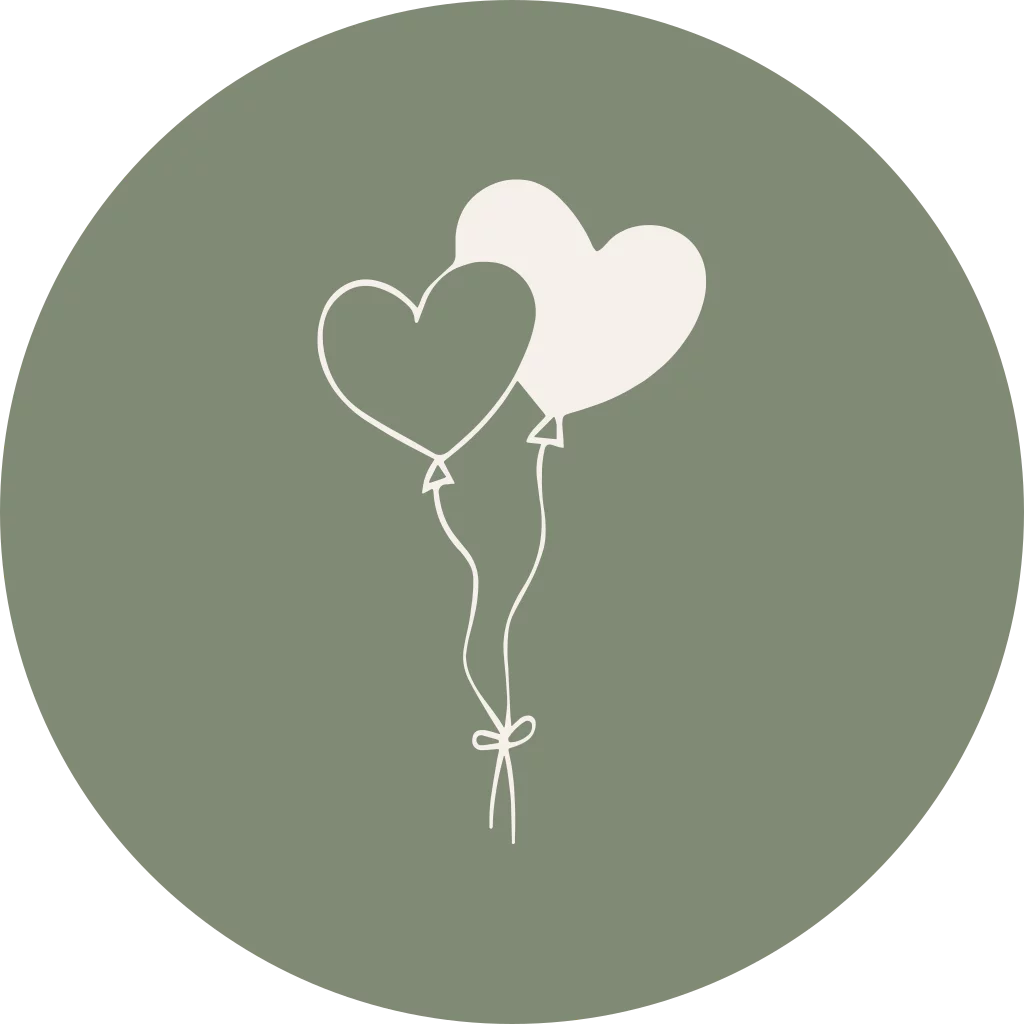 Groene sluitzegel met hartjesballon. Bewerk de sluitzegel naar eigen wens in de editor! De stickers zijn Ø 35 mm en ze zijn te bestellen per 25 stuks.
