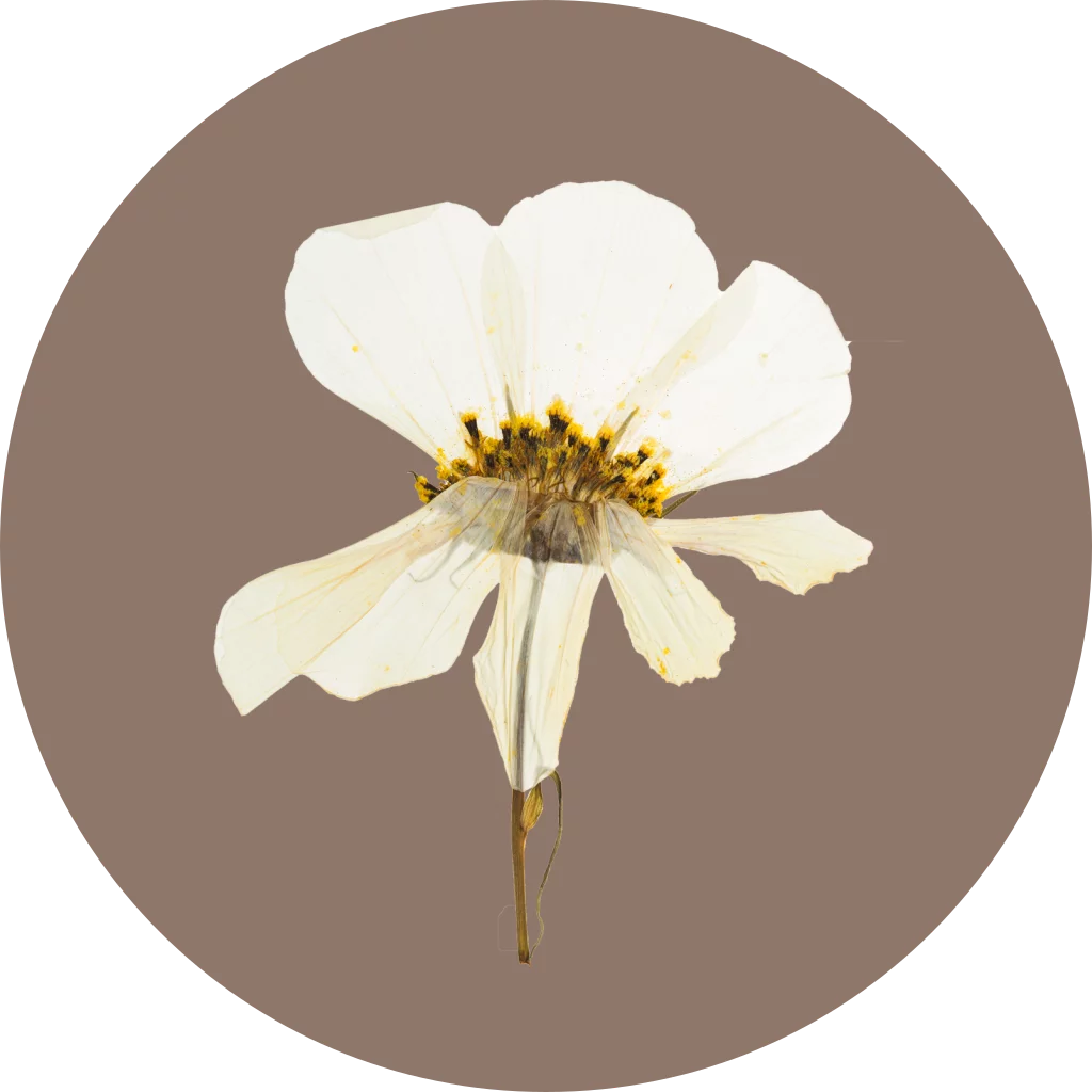 Sluitzegel met witte droogbloem. Bewerk de sluitzegel naar eigen wens in de editor! De stickers zijn Ø 35 mm en ze zijn te bestellen per 25 stuks.