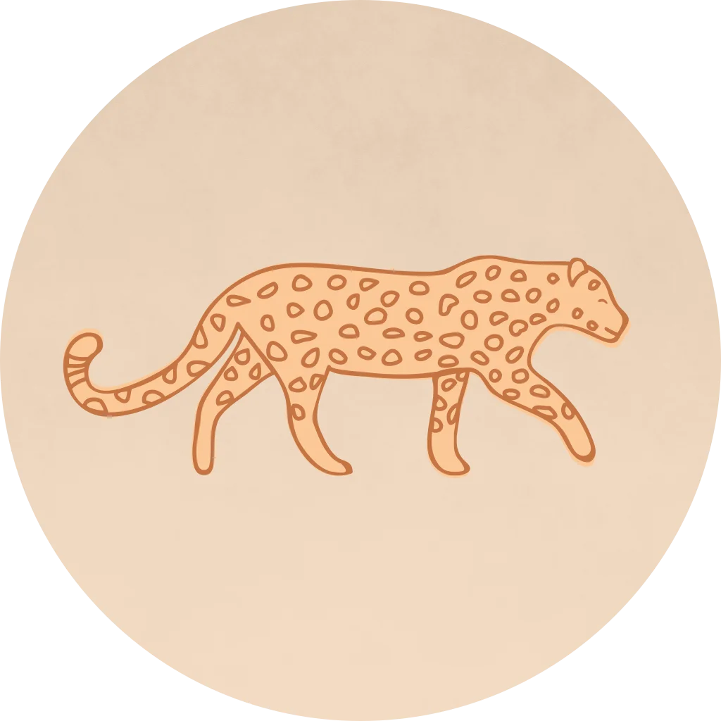 Beige sluitzegel met getekende jachtluipaard. Bewerk de sluitzegel naar eigen wens in de editor! De stickers zijn Ø 35 mm en ze zijn te bestellen per 25 stuks.