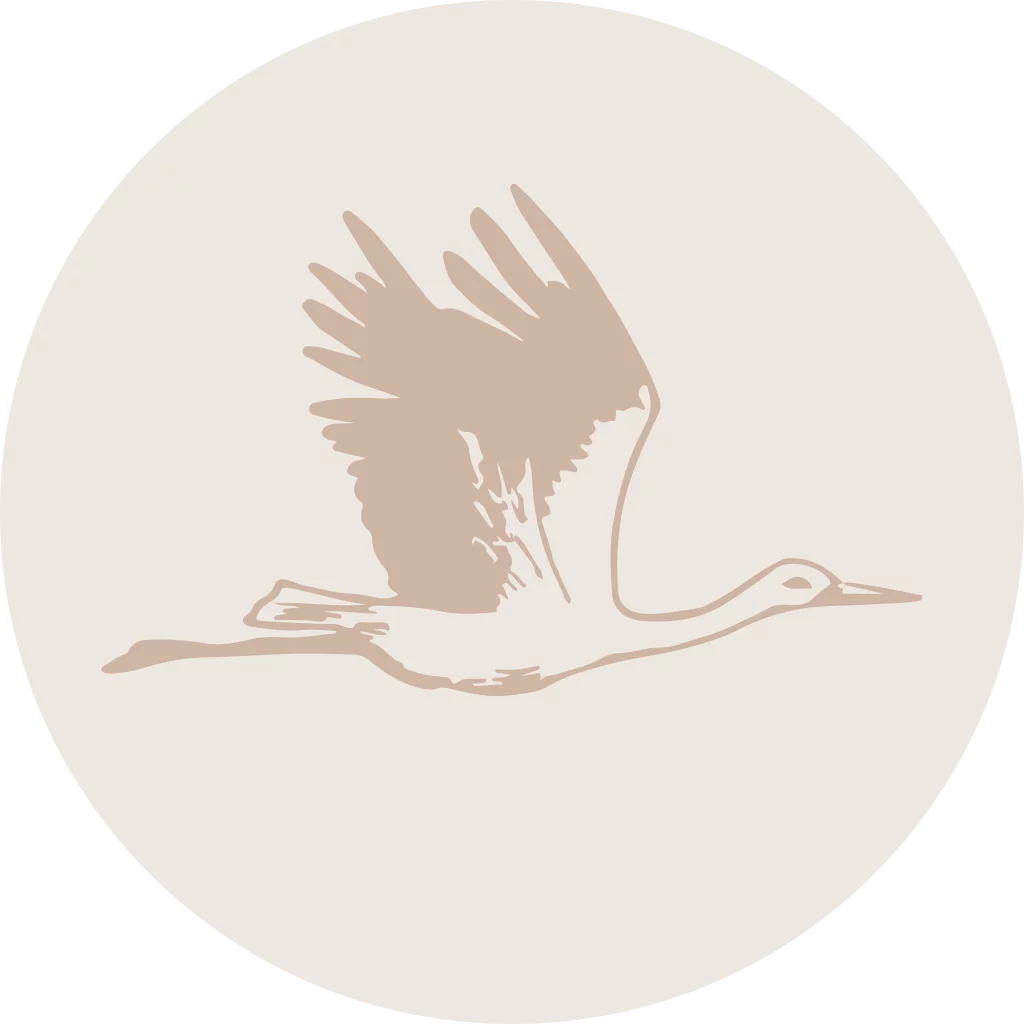 Sluitzegel met vliegende ooievaar. Bewerk de sluitzegel naar eigen wens in de editor! De stickers zijn Ø 35 mm en ze zijn te bestellen per 25 stuks.