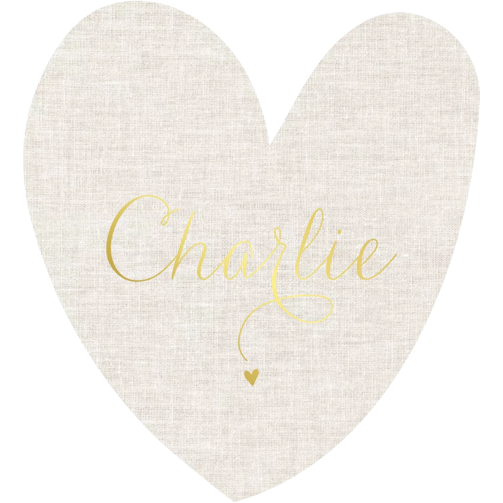 Minimalistisch bijzondere vorm geboortekaartje (uitgesneden, gestanst) in hartje met linnenlook.