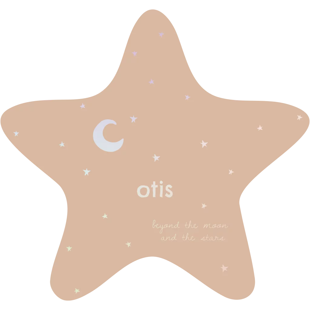 Stervorm geboortekaartje (stanskaart) met maan en sterretjes in regenboogfolie.