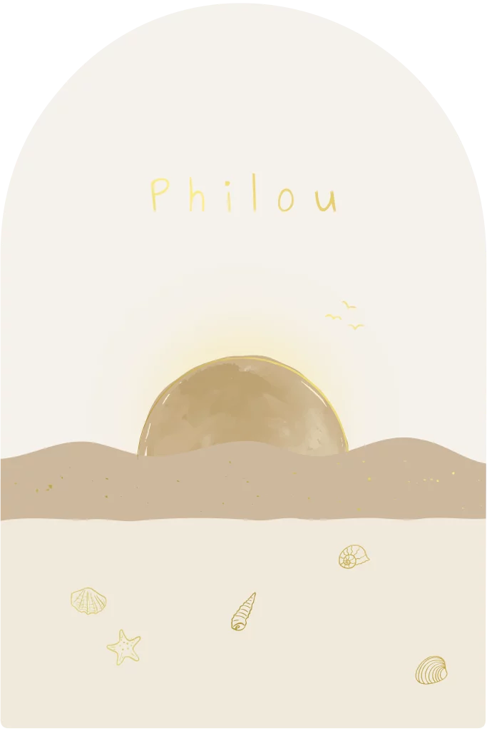 Lief minimalistisch geboortekaartje in boogvorm met een zeethema met handgetekende folie schelpjes. Pas de gegevens gemakkelijk aan in de editor, net zoals de kleuren die je geheel naar wens kunt aanpassen. Heb je hulp nodig of wil je een ander formaat? Stuur ons een berichtje en wij zetten het om voor je.
