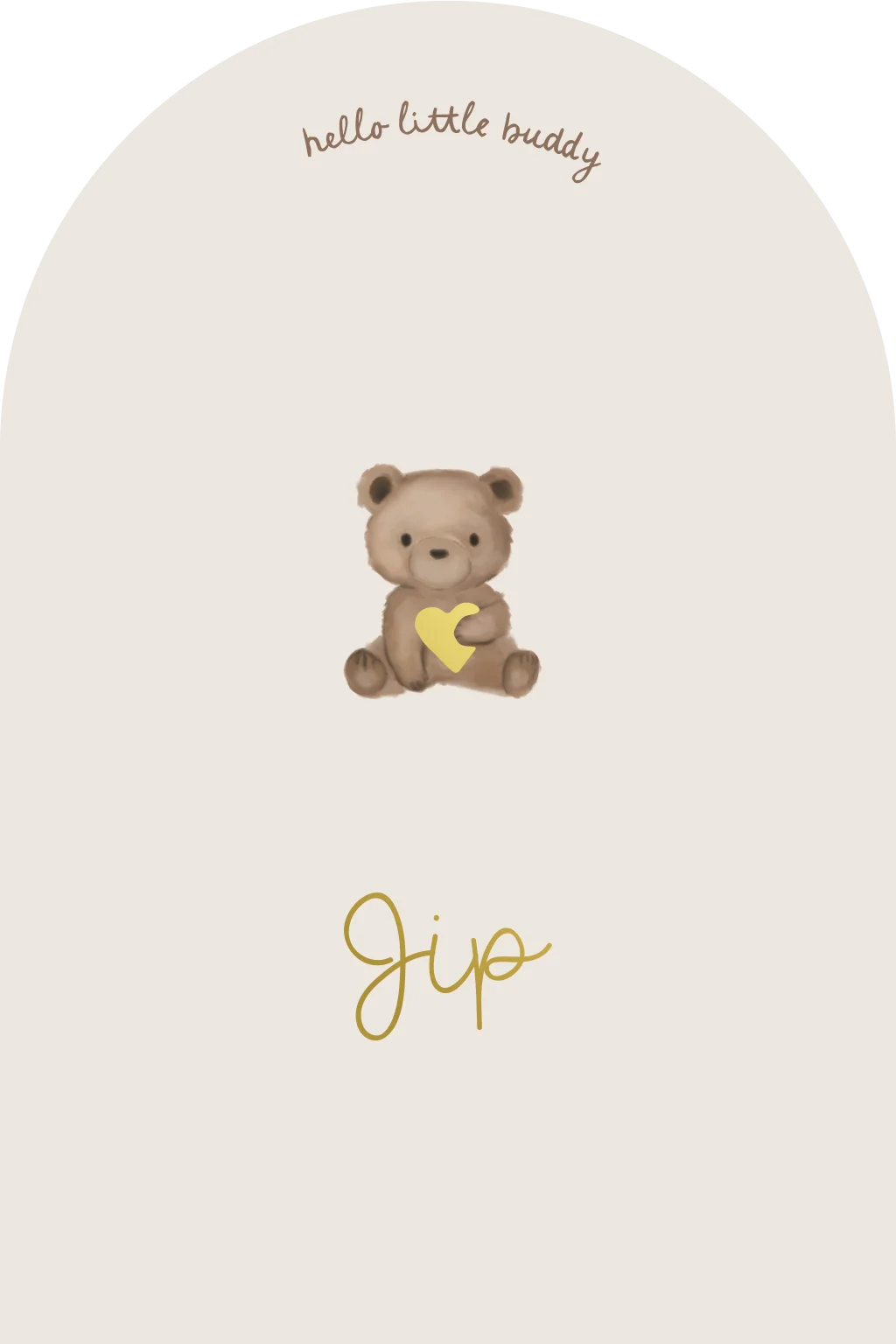 Stoer en lief geboortekaartje in een openslaande boogvormkaart, met een lief knuffelbeertje met een hartje in zijn hand. Pas de kleuren gemakkelijk aan in de gewenste kleuren en/of folie. Heb je hulp nodig of heb je vragen, stuur ons een berichtje en wij helpen je graag!