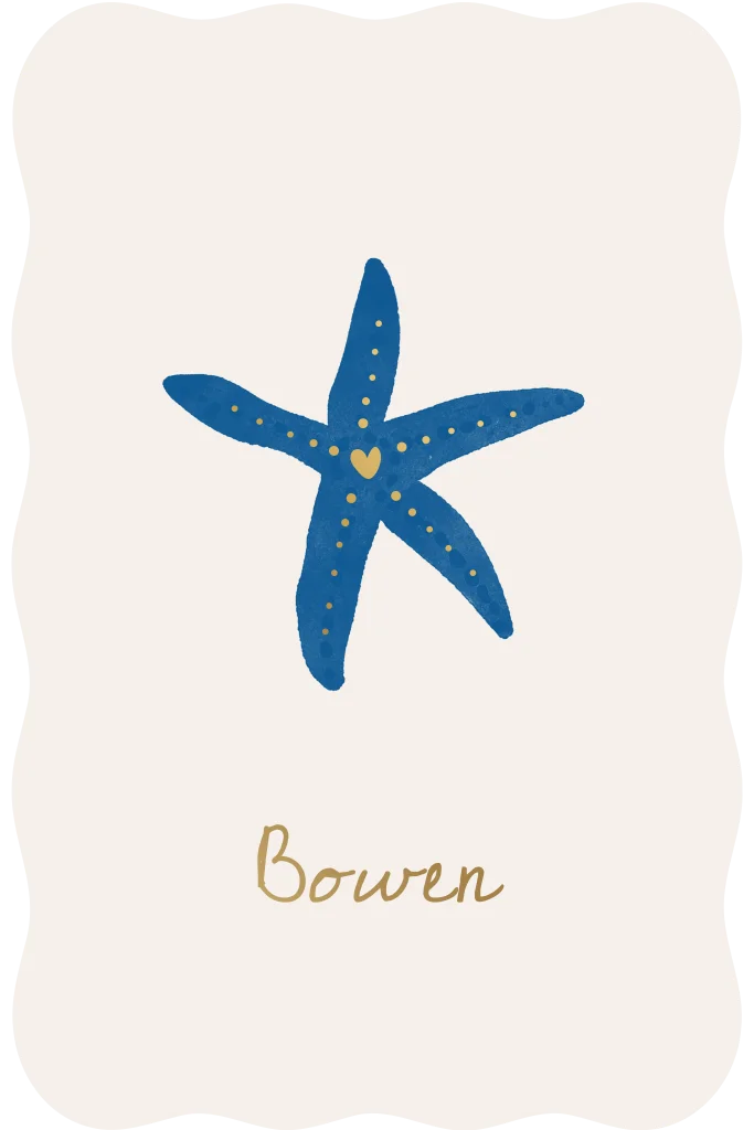Lief en minimalistisch geboortekaartje met een mooie illustratie van een zeester met goudfoliedetails helemaal in zeethema stijl. Zet de kleur zeester in jouw favoriete vorm.