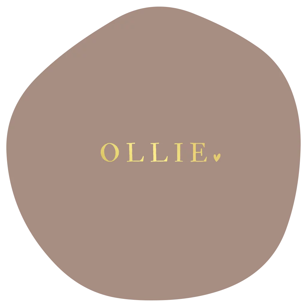 Minimalistisch geboortekaartje in een organische speelse ronde vorm met beige/aardekleur met goudfolie naam en minihartje. Pas gemakkelijk de achtergrondkleur aan in jouw favoriete kleur!